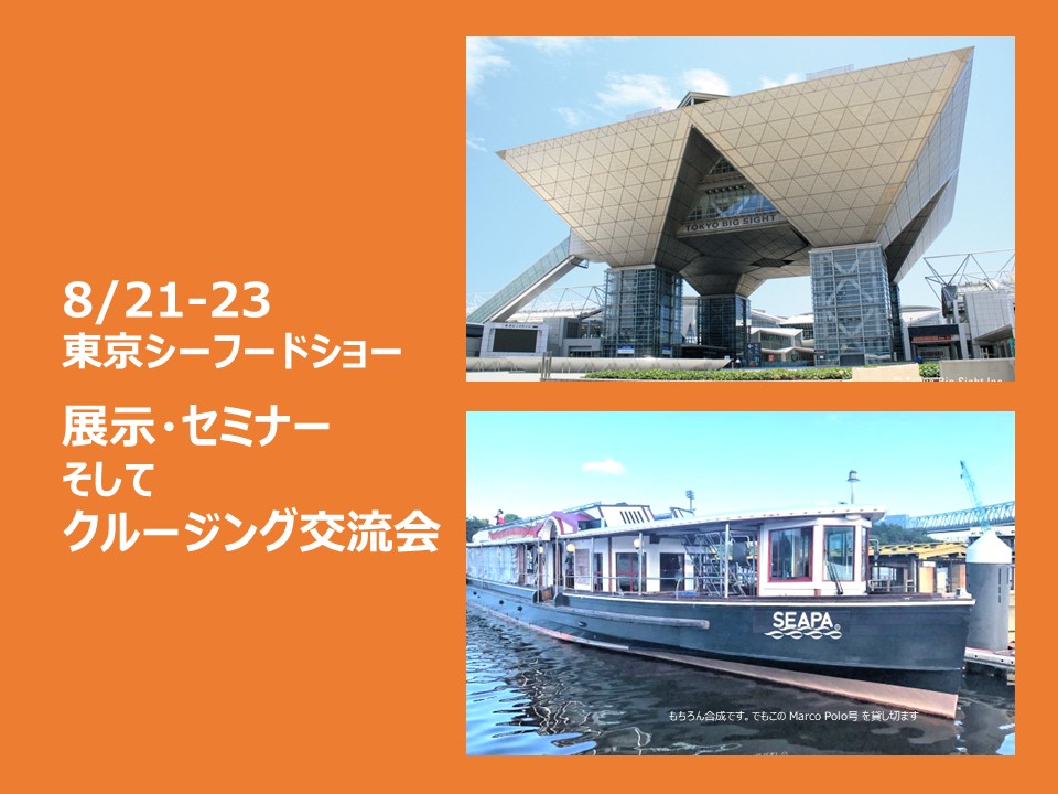 2024년 7월 22일 2024년 7월 22일(종료) 2024년 8/21-23 시푸드쇼(도쿄 빅사이트)에 다시 출전합니다! 세미나도 있습니다. 그리고 교류회는 전세 크루즈에서 진행됩니다!