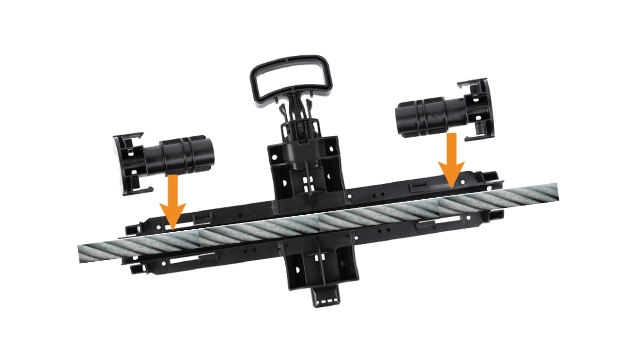 - 로프의 옆에서 장착할 수 있습니다. 로프만 먼저 장착한 후, REVO 설치가 가능합니다.